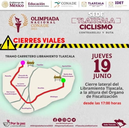 🚧 🚫 A las 17:00 horas de hoy inicia el cierre lateral del Libramiento Tlaxcala, a la altura del Órgano de Fiscalización Superior.