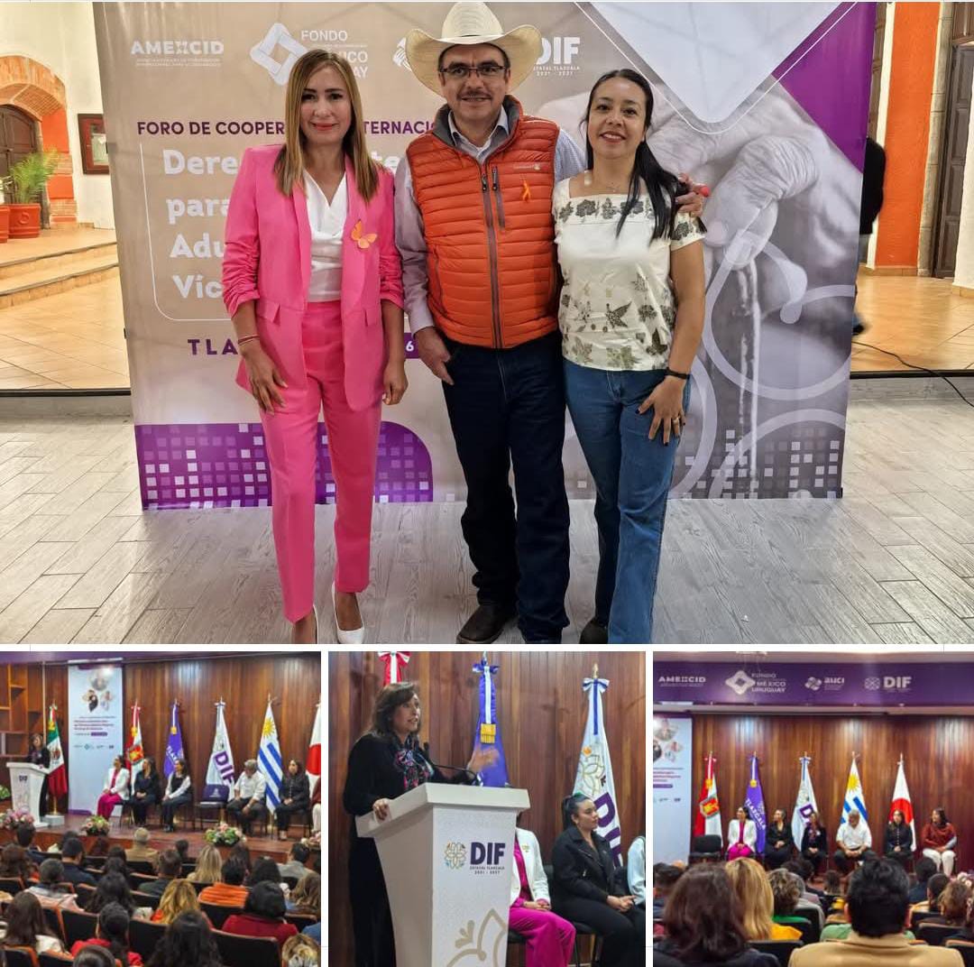 El Presidente Municipal de Yauhquemehcan David Vega Terrazas, acompañado de la Presidenta Honorifica del SMDIF, Hidekel Aguilar Zagoya y la Directora, Hilda Durán Munive, asistió al Foro de Cooperación Internacional «Derechos y Atención para las Personas Adultas Mayores Víctimas de Violencia»