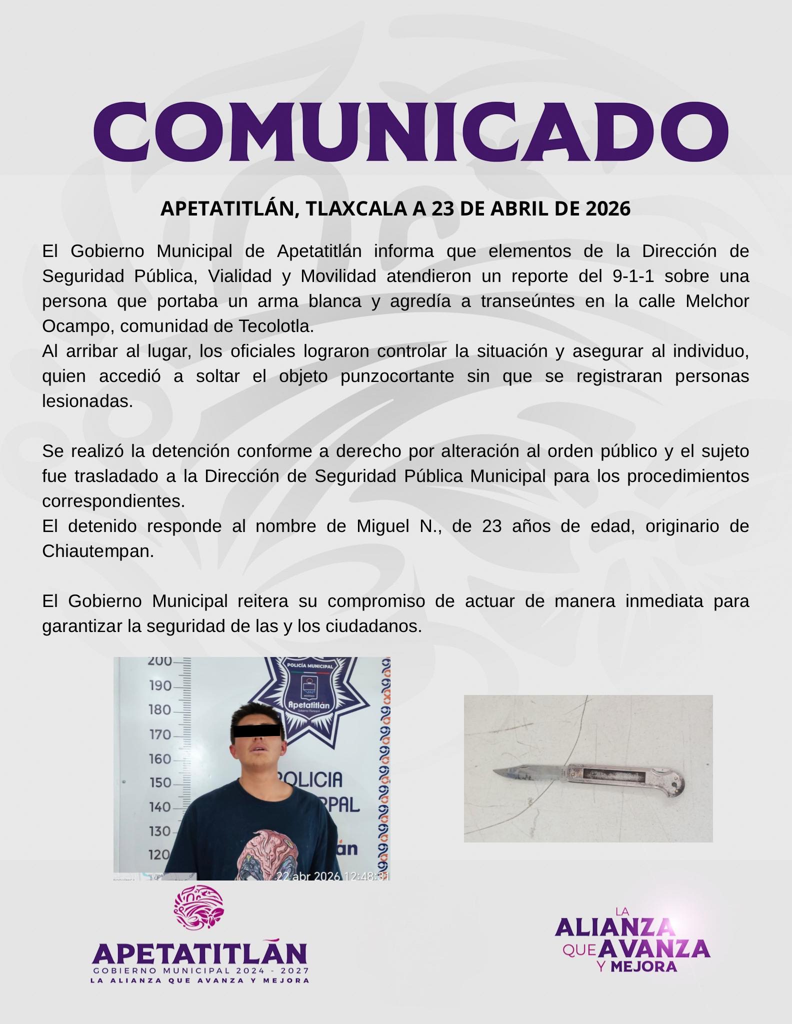 El Gobierno Municipal reitera su compromiso de actuar de manera inmediata para garantizar la seguridad de las y los ciudadanos.