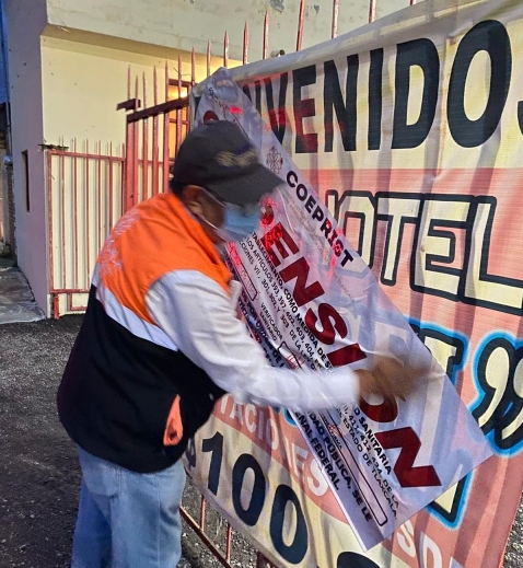 Como medida de seguridad, la Coeprist colocó sellos de suspensión temporal de trabajos y servicios en los accesos principales de cada establecimiento.