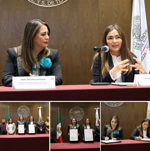 La Secretaría de las Mujeres de Tlaxcala (SMET) y el Tribunal Superior de Justicia del Estado (TSJE) signaron el adendum del convenio de colaboración que permitirá que abogadas especializadas brinden asesoría jurídica, acompañamiento y faciliten la presentación de demandas ante el Juzgado Itinerante de Primera Instancia en materia civil y familiar, además de gestionar medidas de protección, para salvaguardar la integridad de mujeres niñas y adolescentes víctimas de violencia.