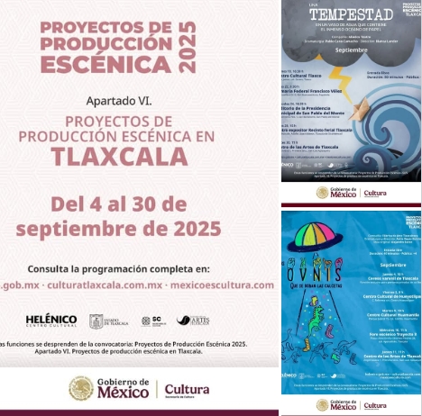 ¡Atención aquí familias! En colaboración del Centro Cultural Helénico con la Secretaría de Cultura Tlaxcala, te invitamos a las funciones que forman parte de los Proyectos de producción escénica en #Tlaxcala.