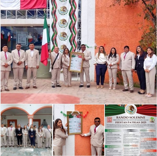 El presidente Municipal de Cuaxomulco, Romรกn Montiel Santiago, encabezรณ los honores al lรกbaro patrio, acto seguido, se comenzรณ la colocaciรณn de los bandos solemnes, en diferentes puntos del municipio, acompaรฑado de la Presidenta Honorรญfica del Sistema Municipal #DIF, Margarita Sรกnchez Montiel, de honorables miembros del cabildo, y presidentes de las diferentes comunidades.