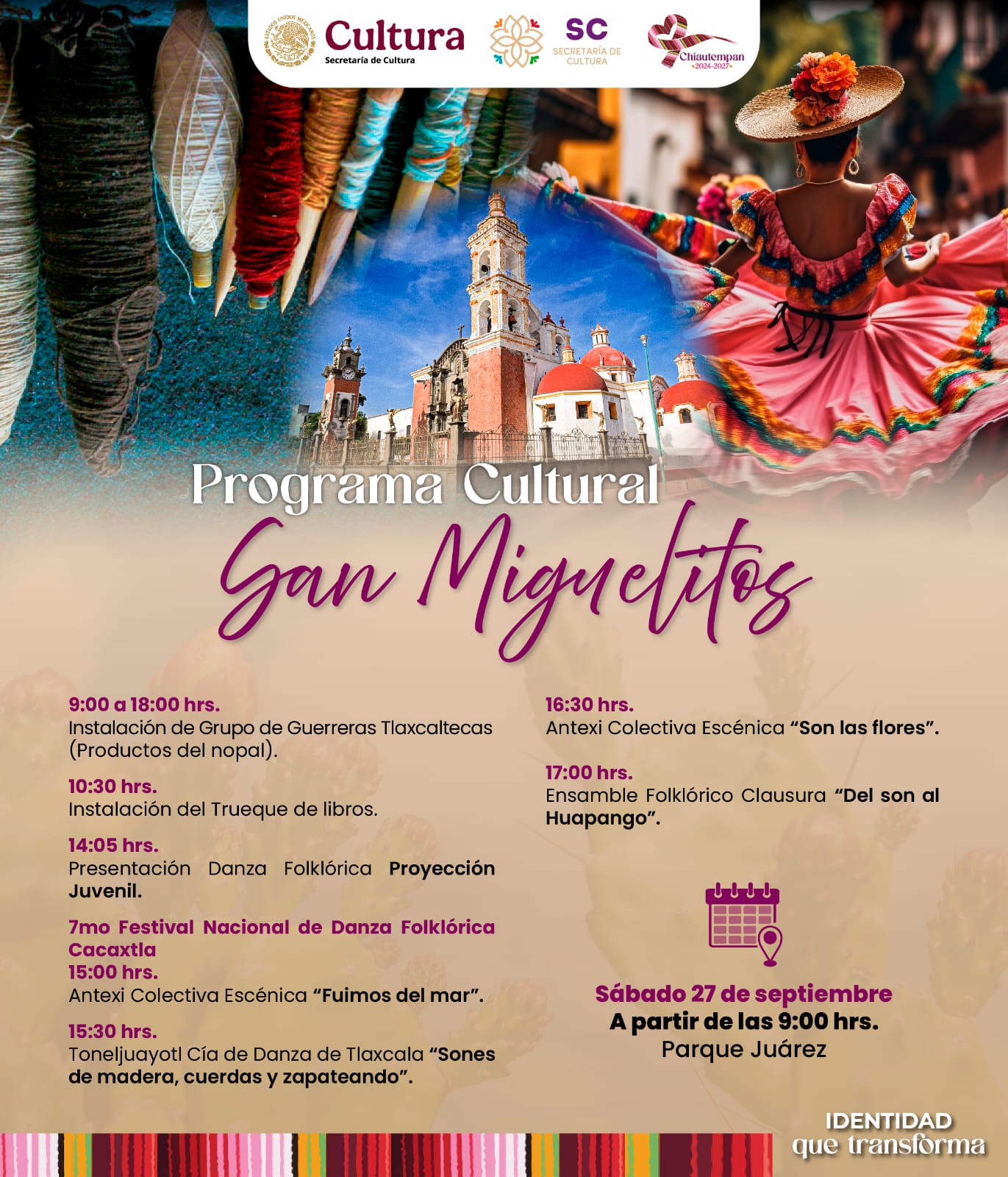 Con motivo de la llegada de los visitantes «Miguelitos», disfruta de las actividades culturales que el gobierno municipal de Chiautempan incluido el Festival Nacional de Danza que organiza el Ballet Folklórico de Cacaxtla A.C. 💃🏻📚