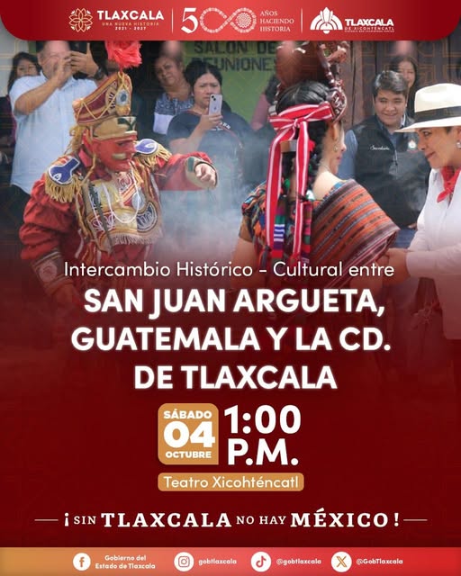 🌎 En conmemoración de los 500 años de la Ciudad de Tlaxcala, celebramos un Intercambio Histórico – Cultural con San Juan Argueta, Guatemala.