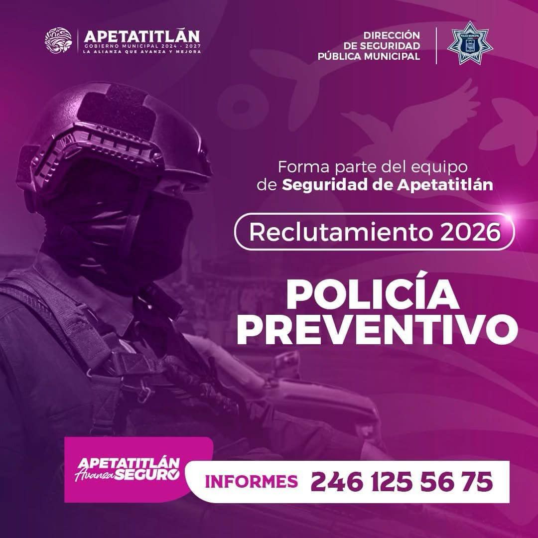 Si tienes vocación de servicio, compromiso y ganas de trabajar por tu comunidad, esta es tu oportunidad de contribuir a un Apetatitlán más seguro y en orden.