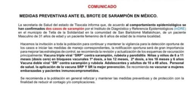 La Secretaría de Salud EdoTlaxcala emite las siguientes recomendaciones para reforzar las medidas de prevención ante el virus del sarampión e invita a la población a seguirlas de manera responsable: