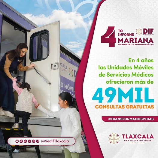 En 4 años, el @SEDIF Tlaxcala brindó 49 mil consultas médicas gratuitas a través de nuestras #UnidadesMóviles, acercando servicios de calidad a cada rincón del estado. 🚐💨🥼
