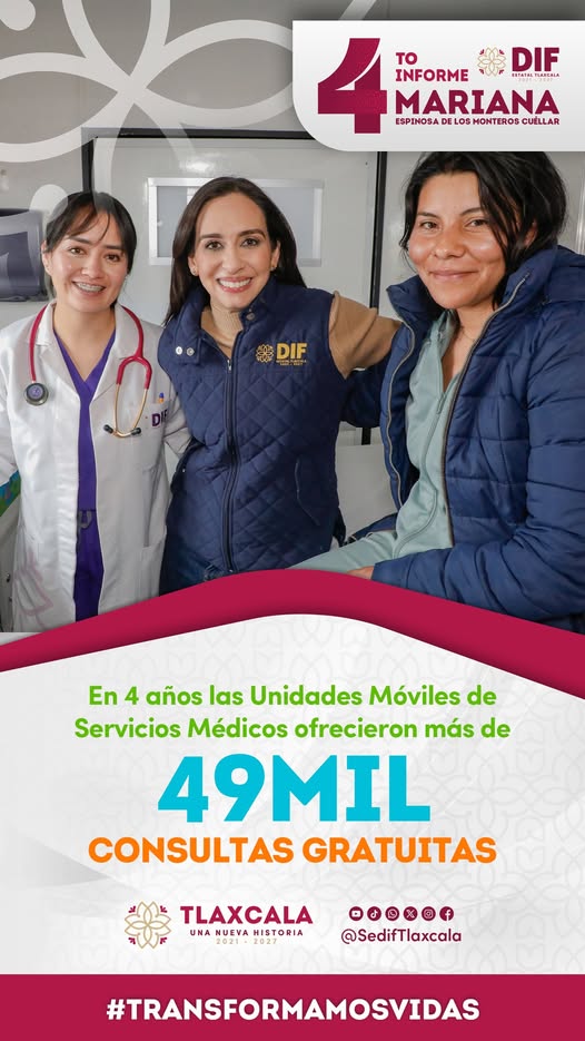 En 4 años, el @SEDIF Tlaxcala brindó 49 mil consultas médicas gratuitas a través de nuestras #UnidadesMóviles, acercando servicios de calidad a cada rincón del estado. 🚐💨🥼