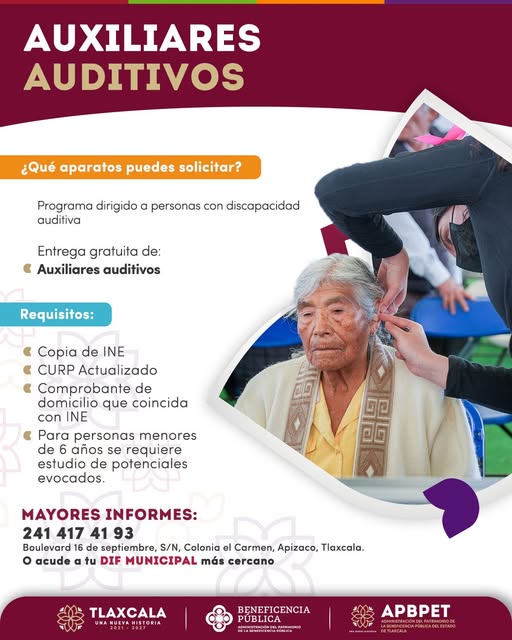 Solicita tus auxiliares auditivos de forma gratuita a través de la Beneficencia Pública de Tlaxcala.