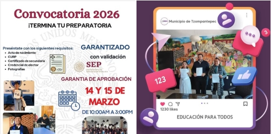 Tzompantepec, Tlaxcala; Con el objetivo de ampliar las oportunidades acadรฉmicas en el municipio, el Gobierno de Tzompantepec concretรณ un acuerdo de colaboraciรณn con el Instituto MC Educaciรณn y Certificaciรณn Tlaxcala, que permitirรก a jรณvenes y adultos concluir sus estudios de nivel preparatoria a travรฉs de un proceso formal y con facilidades econรณmicas.