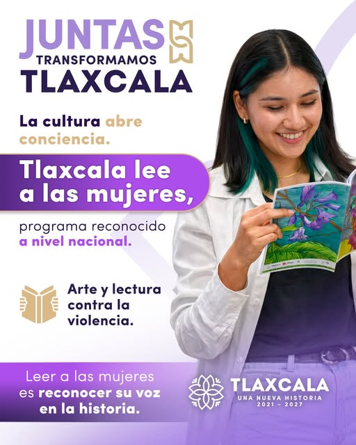Con nuestro programa «Tlaxcala lee a las mujeres», reconocido a nivel nacional, estamos abriendo conciencias y tejiendo historias. 💗 Creemos que el arte y la lectura son herramientas poderosas contra la violencia.