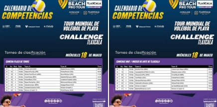 Conoce los encuentros que se realizarán este 18 de marzo en el Tour Mundial de Voleibol de Playa Tlaxcala 2026.