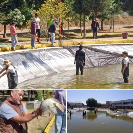 Como parte de este proceso, la universidad realiza trabajos de mantenimiento integral en el lago del campus —espacio central del proyecto— con el objetivo de asegurar condiciones óptimas para el desarrollo de la especie. Estas labores incluyen la limpieza y rehabilitación de la geomembrana, fundamentales para preservar el equilibrio del ecosistema.