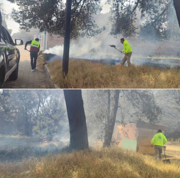 Elementos de Protección Civil de Santa Cruz Tlaxcala atendieron reporte ciudadano sobre un incendio registrado en la calle Venustiano Carranza, en las inmediaciones del panteón de la comunidad de Jesús Huitznáhuac.