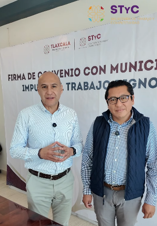 El Secretario de Trabajo y Competitividad, José Noé Altamirano Islas, firmó un convenio de colaboración con el Presidente Municipal de Totolac, Benjamín Atonal Conde