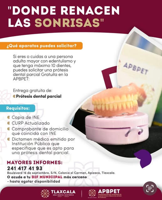 La Beneficencia Pública del Estado de Tlaxcala ofrece prótesis dentales parciales completamente gratuitas.