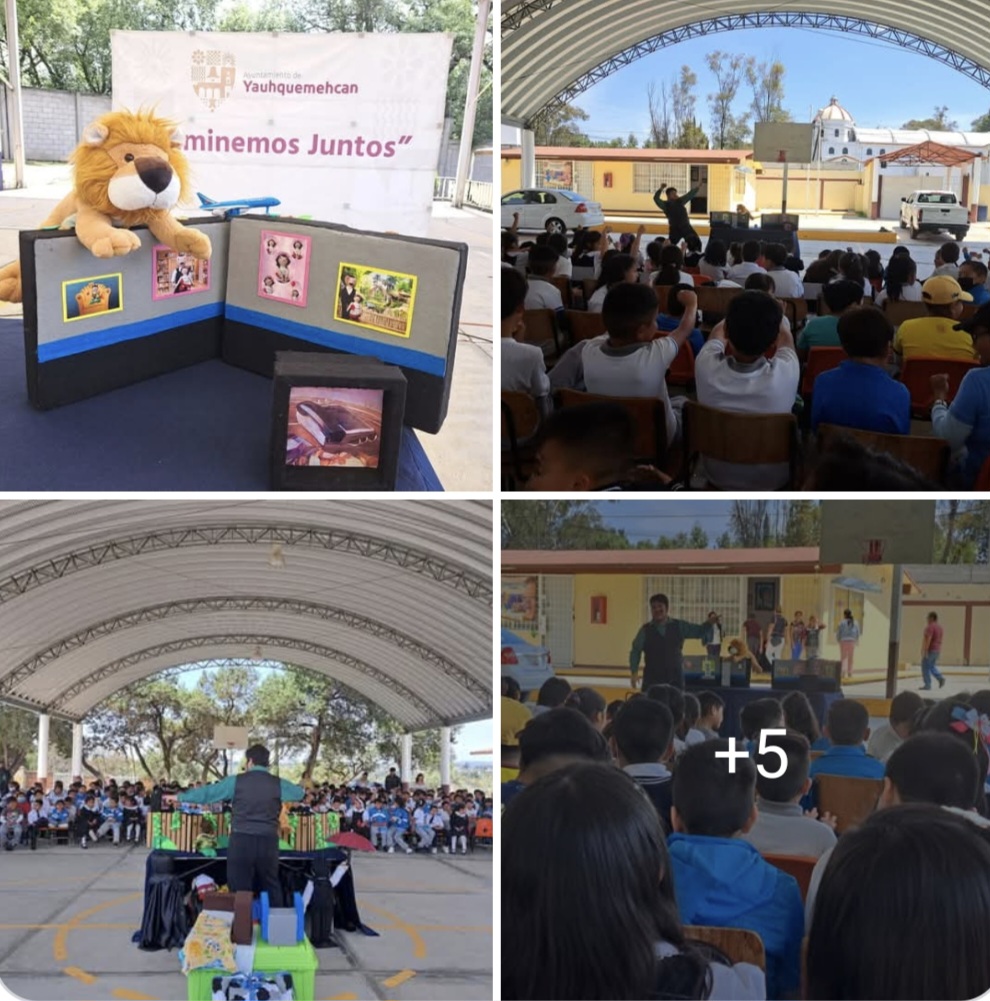La Coordinación de Cultura,Educación y Arte llevo a cabo el acompañamiento de la presentación de la obra «El leoncito perdido», una excelente producción de la compañía Brújula Teatro en la Escuela Primaria Emilio Carranza de Huacaltzingo, la Escuela Primaria Justo Sierra y el Preescolar Pedro Vazquez Ramos de San Benito Xaltocan.