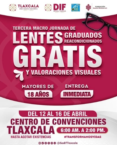 El Sistema Estatal DIF en coordinación con el Sistema Municipal DIF de Cuaxomulco, lleva a cabo la Tercera Macro Jornada de Lentes Graduados Reacondicionados Gratuitos y Valoraciones Visuales.